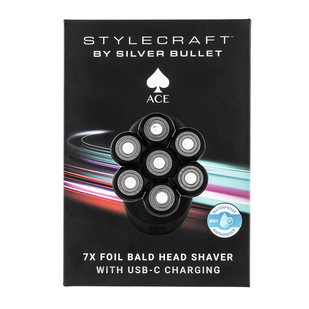 How to achieve the closest possible uniform shave? StyleCraft by Silver Bullet Ace 7x Foil Bald Head Shaver is the key. This shaver features 7 floating foil shavers which adjust to any shape for ultra-smart contouring.